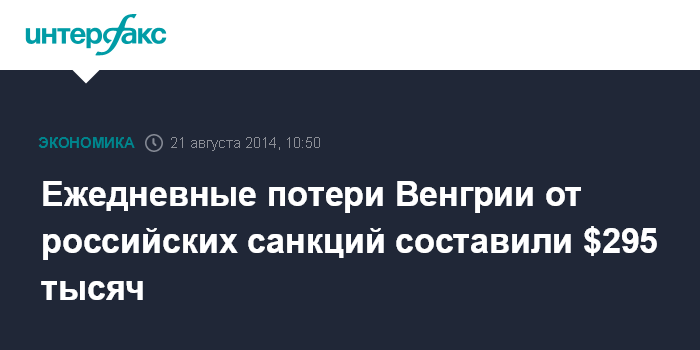 Ежедневные потери Венгрии от российских санкций составили $295 тысяч