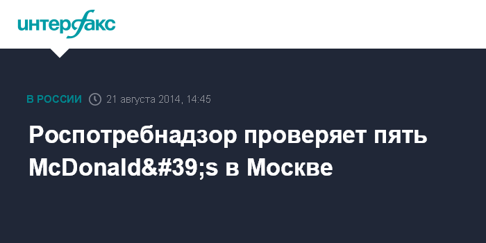 Москва. 21 августа. INTERFAX.RU - Санитарная служба проводит в Москве проверки в отношении пяти предприятий сети McDonald's, сообщило в четверг столичное управление Роспотребнадзора.