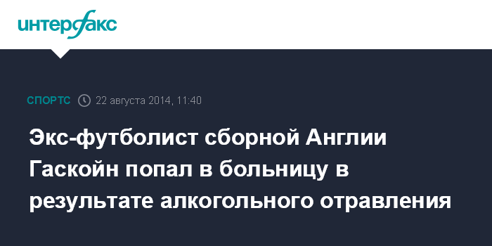 Москва. 22 августа. INTERFAX.RU - Бывший нападающий сборной Англии по футболу Пол Гаскойн в очередной раз стал жертвой неумеренного употребления алкоголя, сообщает Daily Mail.