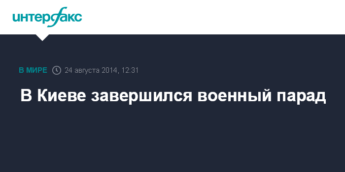 Москва. 24 августа. INTERFAX.RU - Военный парад в честь 23-й годовщины независимости Украины на площади Независимости в Киеве завершился выступлением военного ансамбля, которое началось сразу после того, как по улице Крещатик прошла колонна военной техники.