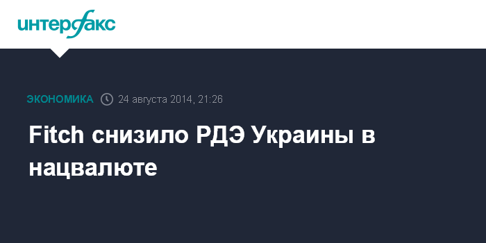 Москва. 24 августа. INTERFAX.RU - Международное рейтинговое агентство Fitch снизило долгосрочный рейтинг дефолта эмитента (РДЭ) Украины в национальной валюте с "B-" до "CCC", или "чрезвычайно спекулятивного" уровня, сообщается в пресс-релизе агентства.