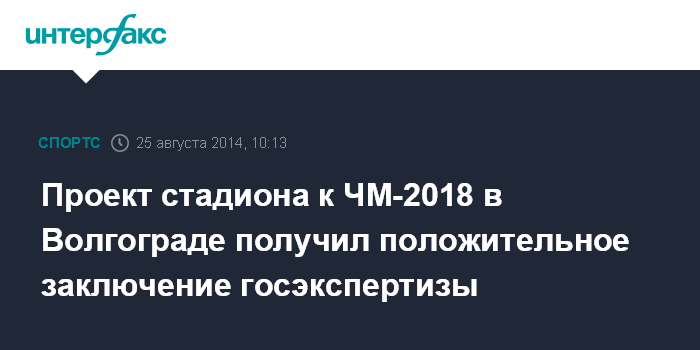 Москва. 25 августа. INTERFAX.RU - Волгоградская область получила положительное заключение государственной экспертизы на строительство нового стадиона "Победа" к играм чемпионата мира по футболу 2018 года, сообщили "Интерфаксу" в пресс-службе регионального правительства.