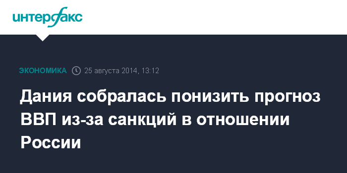 Москва. 25 августа. INTERFAX.RU - Власти Дании могут на этой неделе понизить прогноз экономического роста на 2014 год в связи с негативным влиянием антироссийских санкций на бизнес компаний, включая Carlsberg A/S, прогнозируют экономисты Danske Bank A/S и Svenska Handelsbanken AB.