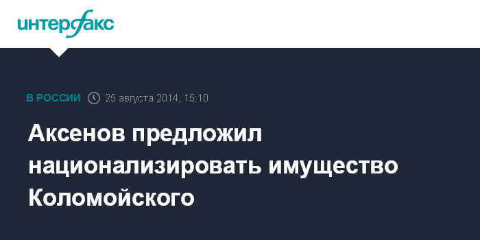 Москва. 25 августа. INTERFAX.RU - И.о. главы Крыма Сергей Аксенов предложил национализировать имущество украинского бизнесмена Игоря Коломойского, который после смены власти на Украине был назначен губернатором Днепропетровской области. Об этом Аксенов заявил в интервью "Интерфаксу".
