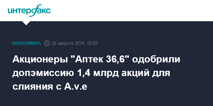 Ранее "Аптечная сеть 36,6" планировала в рамках слияния с A.v.e. разместить допэмиссию на 595 млн акций по цене в 22,4 рубля за бумагу. Вопрос выносился на рассмотрение внеочередного собрания акционеров, однако допэмиссия не была одобрена из-за отсутствия кворума.