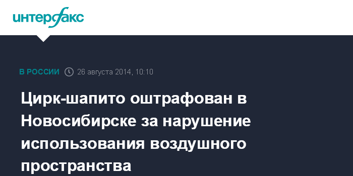 Москва. 26 августа. INTERFAX.RU - Цирк-шапито Демидовых привлечен к административной ответственности за нарушение использования воздушного пространства в Новосибирске, сообщает Западно-Сибирская транспортная прокуратура во вторник.