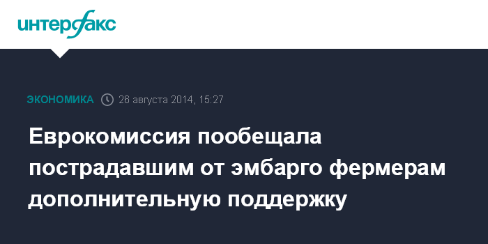Москва. 26 августа. INTERFAX.RU - В Еврокомиссии понимают ситуацию, складывающуюся в сельскохозяйственно-пищевом секторе ЕС в связи с российским эмбарго на ряд продовольственных продуктов, и готовят новые предложения о помощи производителям, заявил на брифинге в Брюсселе во вторник официальный представитель ЕК Джонатан Тодд.
