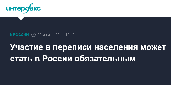 Москва. 26 августа. INTERFAX.RU - Федеральная служба государственной статистики (Росстат) инициировала внесение изменений в законодательство, которые должны сделать обязательным участие граждан во всероссийских переписях населения.