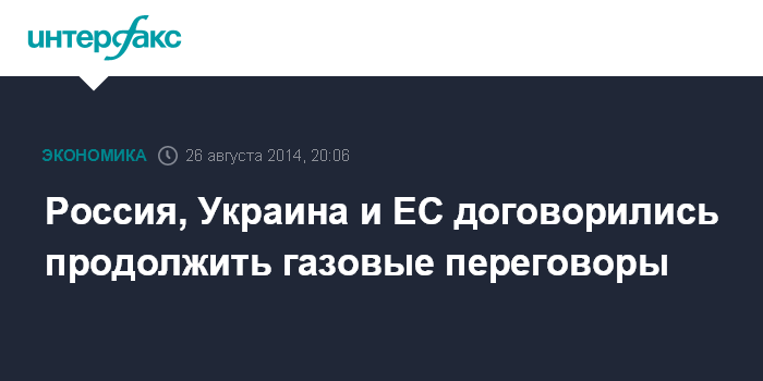 Москва. 26 августа. INTERFAX.RU - Россия, Украина и ЕС договорились продолжить газовые переговоры в трехстороннем формате, заявил журналистам министр энергетики РФ Александр Новак.