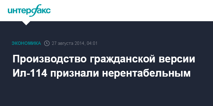 Производство гражданской версии Ил-114 признали нерентабельным