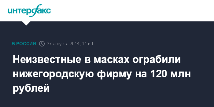 Неизвестные в масках ограбили нижегородскую фирму на 120 млн рублей