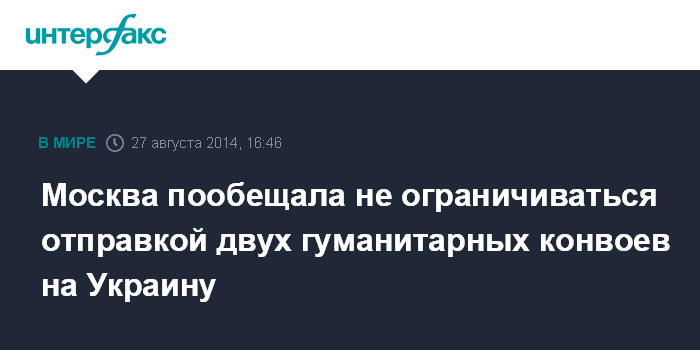 25 августа Лавров сообщил, что Россия проинформировала Украину о подготовке очередного гуманитарного конвоя для помощи жителям юго-востока страны. Глава МИД отмечал, что хочет договориться о доставке второй партии гуманитарной помощи на тех же условиях и по тому же маршруту, с участием украинских пограничников и таможенников.