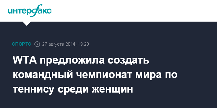 Москва. 27 августа. INTERFAX.RU - Генеральный директор Женской теннисной ассоциации (WTA) Стейси Алластер рассказала о планах организации создать новый турнир аналогичный футбольному чемпионату мира, сообщает The New York Times.