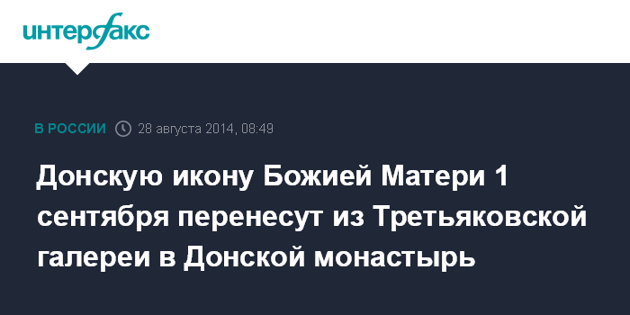 Донскую икону Божией Матери 1 сентября перенесут из Третьяковской галереи в Донской монастырь