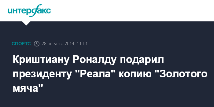 Москва. 28 августа. INTERFAX.RU - Футболист "Реала" Криштиану Роналду преподнес подарок президенту "Королевского клуба" Флорентино Пересу, сообщает официальный сайт команды.
