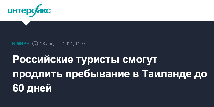 Москва. 28 августа. INTERFAX.RU - Иностранные туристы смогут отдыхать в Таиланде без виз до 60 дней, продлив изначальный срок пребывания, сообщается на сайте Иммиграционной полиции Таиланда. Новые правила вступают в силу с 29 августа.