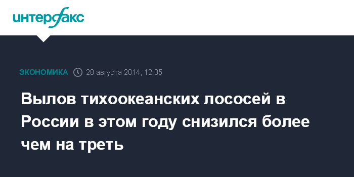 По данным на 26 августа, было выловлено более 240 тыс. тонн лососей, что на 129 тыс. тонн (на 35%) меньше, чем за соответствующий период 2012 года (выловы лососевых сравниваются между четными, "нелососевыми", годами и нечетными, которые считаются "лососевыми").