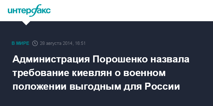 Администрация Порошенко назвала требование киевлян о военном положении выгодным для России