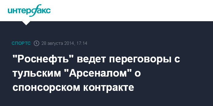 Москва. 28 августа. INTERFAX.RU - Член Совета Федерации от Тульской области Артур Чилингаров подтвердил, что ведутся переговоры о спонсировании компанией "Роснефть" тульского "Арсенала", выступающего в Российской футбольной премьер-лиге (РФПЛ).