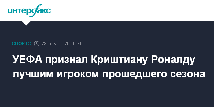 Москва. 28 августа. INTERFAX.RU - Нападающий "Реала" и сборной Португалии Криштиану Роналду стал лучшим игроком Европы сезона-2013/14 по версии УЕФА. Специальный приз футболист получил после жеребьевки группового турнира Лиги чемпионов, которая прошла в четверг в Монако.