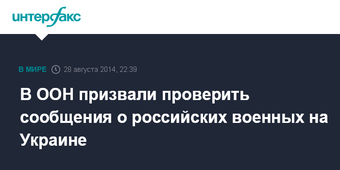 Москва. 28 августа. INTERFAX.RU - Международное сообщество не может закрыть глаза на заявления о присутствии войск РФ на юго-востоке Украины, которые должны быть подтверждены, либо опровергнуты, заявил в четверг заместитель генсека ООН Джеффри Фелтман.