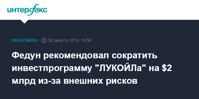 Федун рекомендовал сократить инвестпрограмму "ЛУКОЙЛа" на $2 млрд из-за внешних рисков