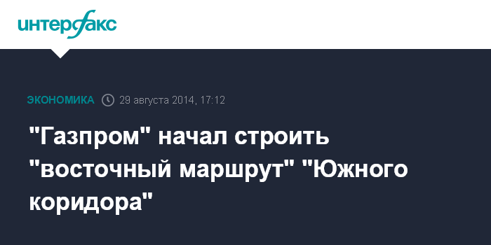 Москва. 29 августа. INTERFAX.RU - "Газпром" начинает строительство "Восточного маршрута" газопроводной системы "Южный коридор", сообщила пресс-служба администрация главы Мордовии по итогам прошедшего в четверг в Саранске совещания по поводу реализации проекта.