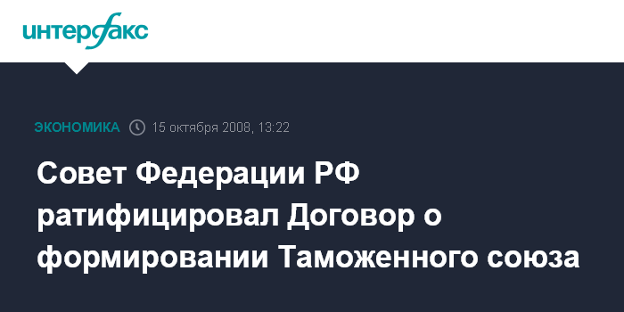 Совет Федерации РФ ратифицировал Договор о формировании Таможенного союза