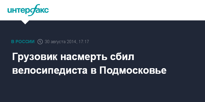 Москва. 30 августа. INTERFAX.RU - Велосипедист погиб в Подмосковье в результате наезда грузовика, сообщается на сайте областного ГУ МВД.