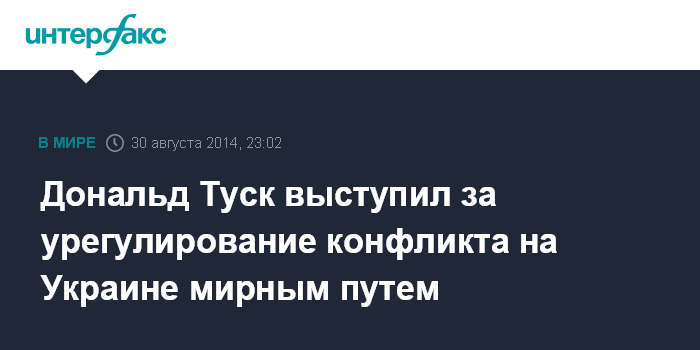 Москва. 30 августа. INTERFAX.RU - Назначенный в субботу на пост главы Евросовета Дональд Туск подчеркнул необходимость мирного разрешения кризиса на Украине.