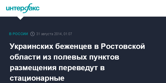 Москва. 31 августа. INTERFAX.RU - В ближайшее время в Ростовской области будут ликвидированы полевые пункты временного размещения украинских беженцев, а они сами будут размещены в стационарных пунктах, заявил губернатор Ростовской области Василий Голубев.