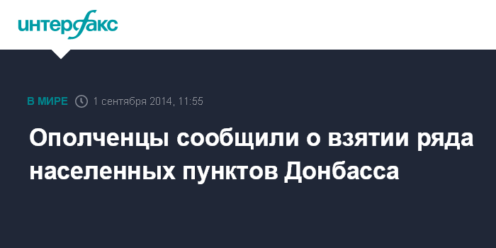 Москва. 1 сентября. INTERFAX.RU - Ополченцы установили контроль над рядом населенных пунктов Донецкой области, сообщает агентство "Новороссия" в понедельник.