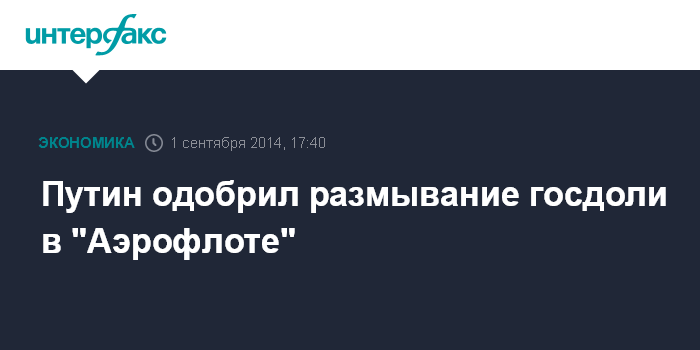 Москва. 1 сентября. INTERFAX.RU - Президент России Владимир Путин одобрил снижение госдоли в ОАО "Аэрофлот - российские авиалинии" до 50% + 1 акция.
