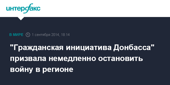 Москва. 1 сентября. INTERFAX.RU - Общественная организация "Гражданская инициатива Донбасса" просит граждан Украины о содействии в борьбе за мир на юго-востоке страны, сообщается в понедельник в распространенном организацией обращении.
