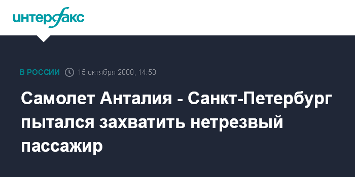 Самолет Анталия - Санкт-Петербург пытался захватить нетрезвый пассажир