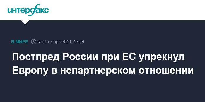 Москва. 2 сентября. INTERFAX.RU - Европейский союз на примере украинского кризиса не смог подтвердить статус стратегического партнера России, Москва будет судить о политике Брюсселя по делам, а не словам, заявил постпред России при ЕС Владимир Чижов.