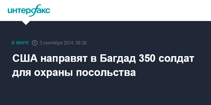 Москва. 3 сентября. INTERFAX.RU - Президент США Барак Обама в среду подписал указ, согласно которому в Багдад для защиты американской дипмиссии отправятся еще 350 солдат, сообщает CNN.