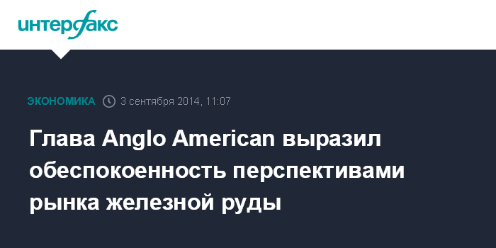 Москва. 3 сентября. INTERFAX.RU - Главный исполнительный директор Anglo American Plc Марк Кутифани выразил обеспокоенность перспективами рынка железной руды в условиях резкого падения цен и сигналов того, что избыток этого вида сырья на рынке вряд ли уменьшится в ближайшее время, пишет газета The Wall Street Journal.