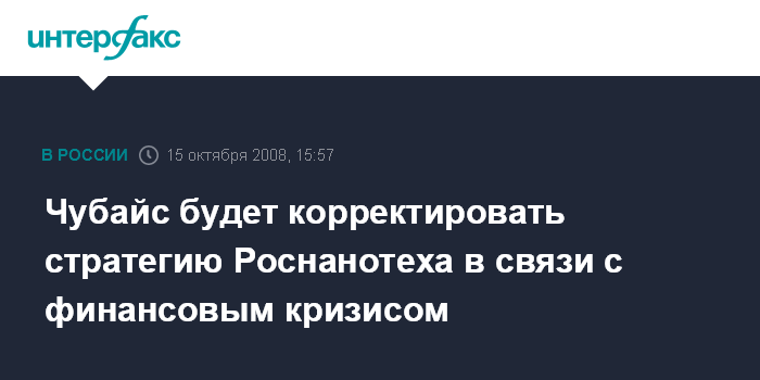 Чубайс будет корректировать стратегию Роснанотеха в связи с финансовым кризисом