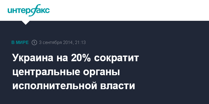 Москва. 3 сентября. INTERFAX.RU - Количество центральных органов исполнительной власти на Украине будет сокращено на 20%, сообщил министр кабинета министров Остап Семерак на брифинге в среду.