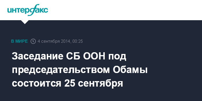 Заседание СБ ООН под председательством Обамы состоится 25 сентября