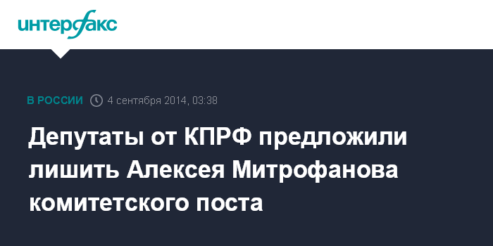 Москва. 4 сентября. INTERFAX.RU - Члены КПРФ направят председателю Госдумы Сергею Нарышкину обращение о нецелесообразности занятия Алексеем Митрофановым должности председателя комитета по информполитике, информационным технологиям и связи, сообщает газета "Ведомости" в четверг.