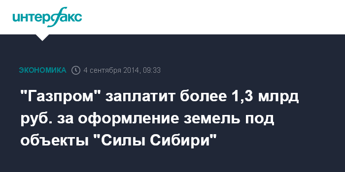 "Газпром" заплатит более 1,3 млрд руб. за оформление земель под объекты "Силы Сибири"