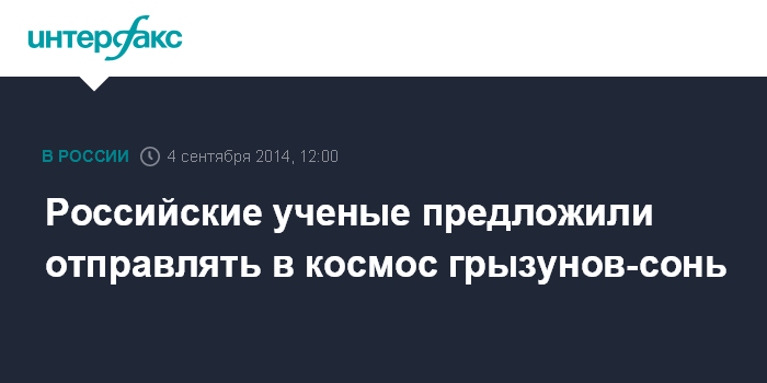 Москва. 4 сентября. INTERFAX.RU - Российские ученые рассматривают возможность запуска в космос грызунов сонь для исследования спячки у животных. Об этом "Интерфаксу" сообщил заведующий лабораторией "Биологические системы жизнеобеспечения человека" Института медико-биологических проблем РАН, руководитель программы биологической части проекта "Фотон-М" Владимир Сычев.
