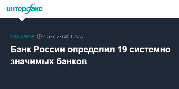 Москва. 4 сентября. INTERFAX.RU - Критериям системный значимости на сегодняшний день соответствуют 19 российских банков, заявил зампред ЦБ Михаил Сухов на форуме "Банки России - XXI век" в четверг.