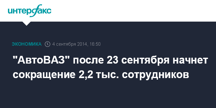 "АвтоВАЗ" после 23 сентября начнет сокращение 2,2 тыс. сотрудников