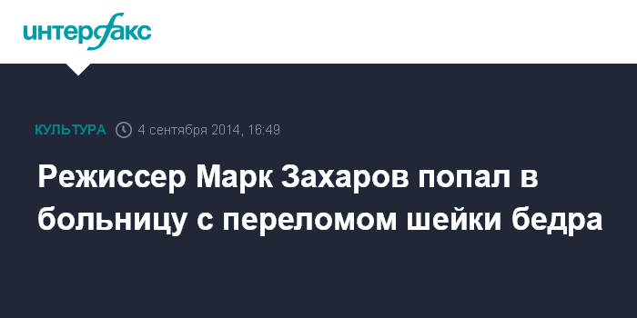 Источник, близкий к руководству "Ленкома", уточнил "Интерфаксу", что режиссер был госпитализирован утром с переломом шейки бедра.