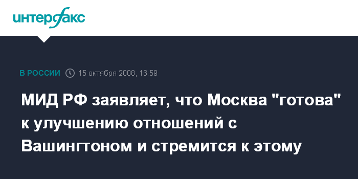 Москва. 15 октября. INTERFAX.RU - В Москве готовы к улучшению отношений с США, однако констатируют, что американская администрация избрала деструктивную риторику в диалоге с Россией.