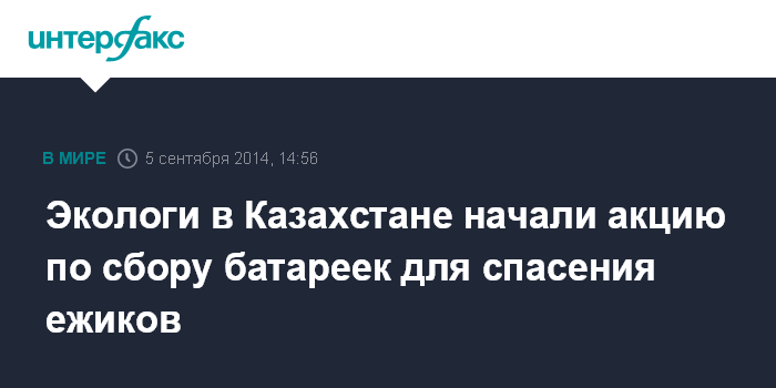 Москва. 5 сентября. INTERFAX.RU - В городе Рудный Костанайской области Казахстана стартует акция "Сдай батарейку - спаси ежика".