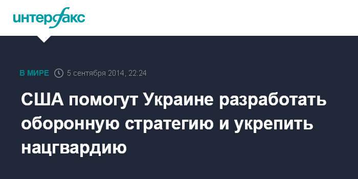 Москва. 5 сентября. INTERFAX.RU - США готовят меры по оказанию помощи Украине в разработке новой оборонной стратегии и укреплении Национальной гвардии, говорится в заявлении, размещенном в пятницу на сайте Белого дома.